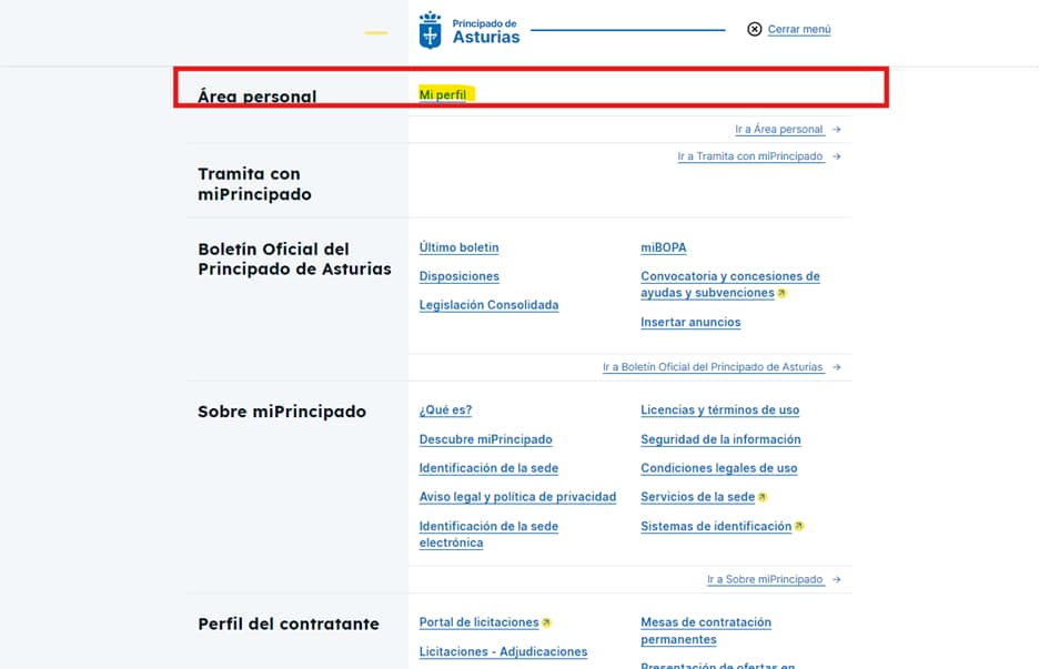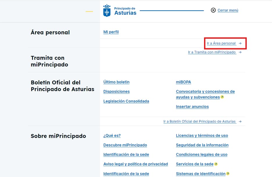 Una vez dentro de miprincipado.asturias.es, tendremos que identificarnos como ciudadanos en la esquina superior derecha “acceder”