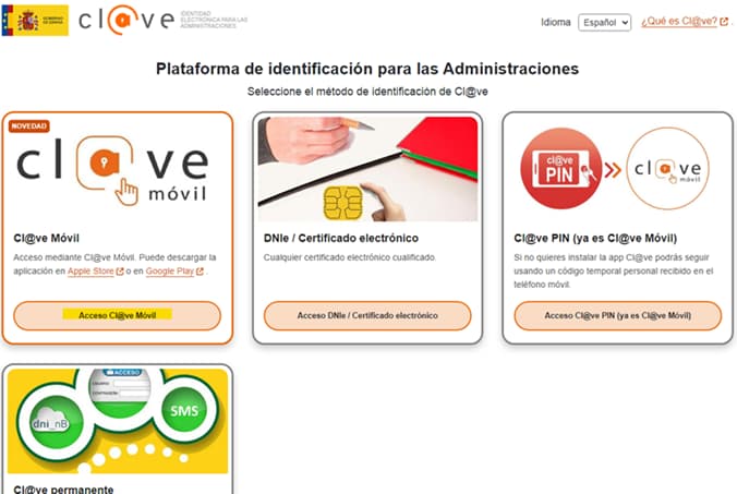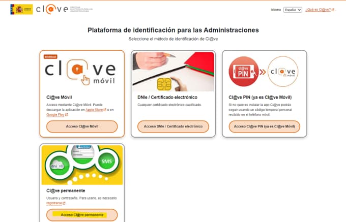 El acceso puede hacerse mediante Cl@ve Pin o Cl@ve Permanente: