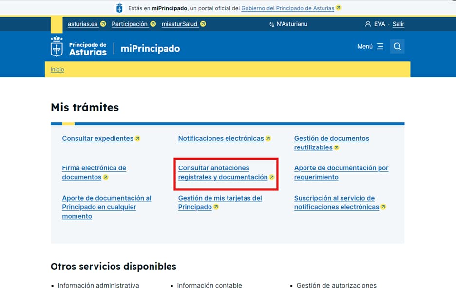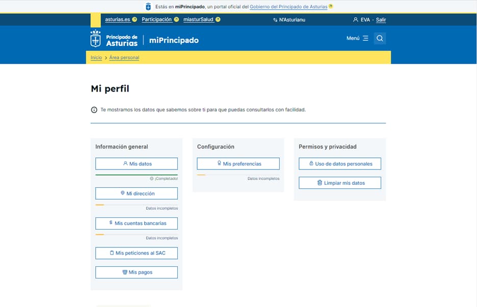 - Aparecerá una nueva pasarela del Principado de Asturias que vinculará nuestros datos con los del trámite que se está llevando a cabo.