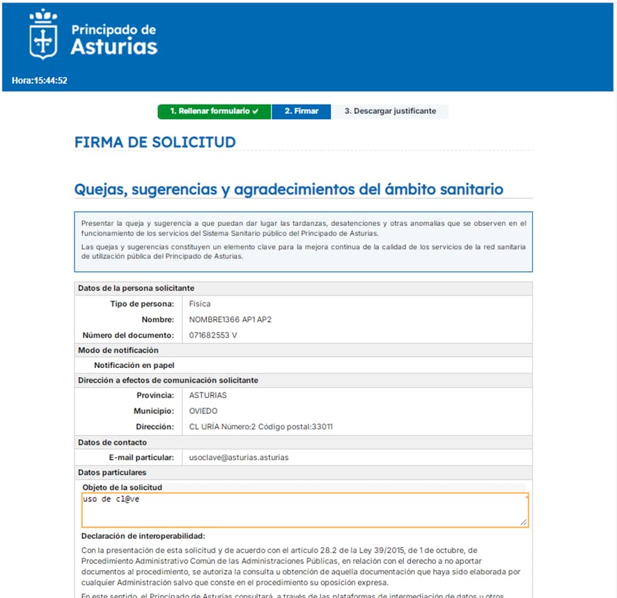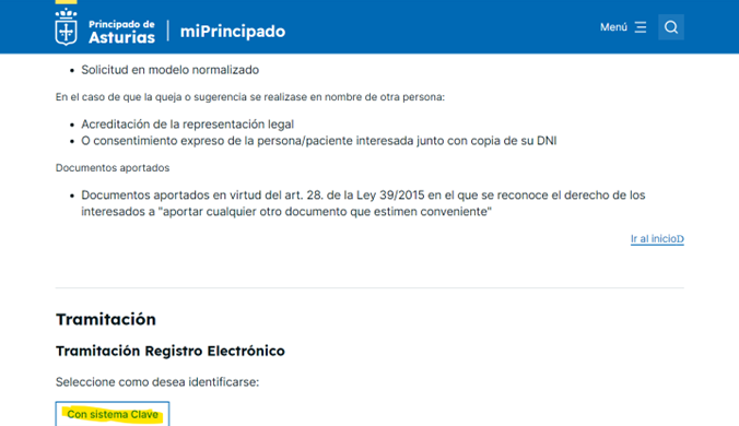 De esta forma hemos presentado un trámite de manera telemática en la sede del Principado de Asturias con el sistema Cl@ve a través de miprincipado.asturias.es.