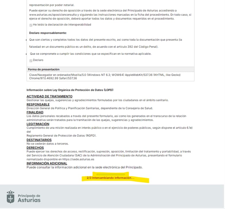 Al igual que con el modo de identificación mediante “cl@ve movil”, aparecerá una nueva pasarela del Principado de Asturias que vinculará nuestros datos con los del trámite que se está llevando a cabo.