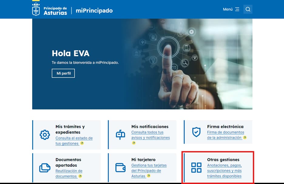 Una vez dentro del área personal tendremos acceso a un apartado llamado “otras gestiones”